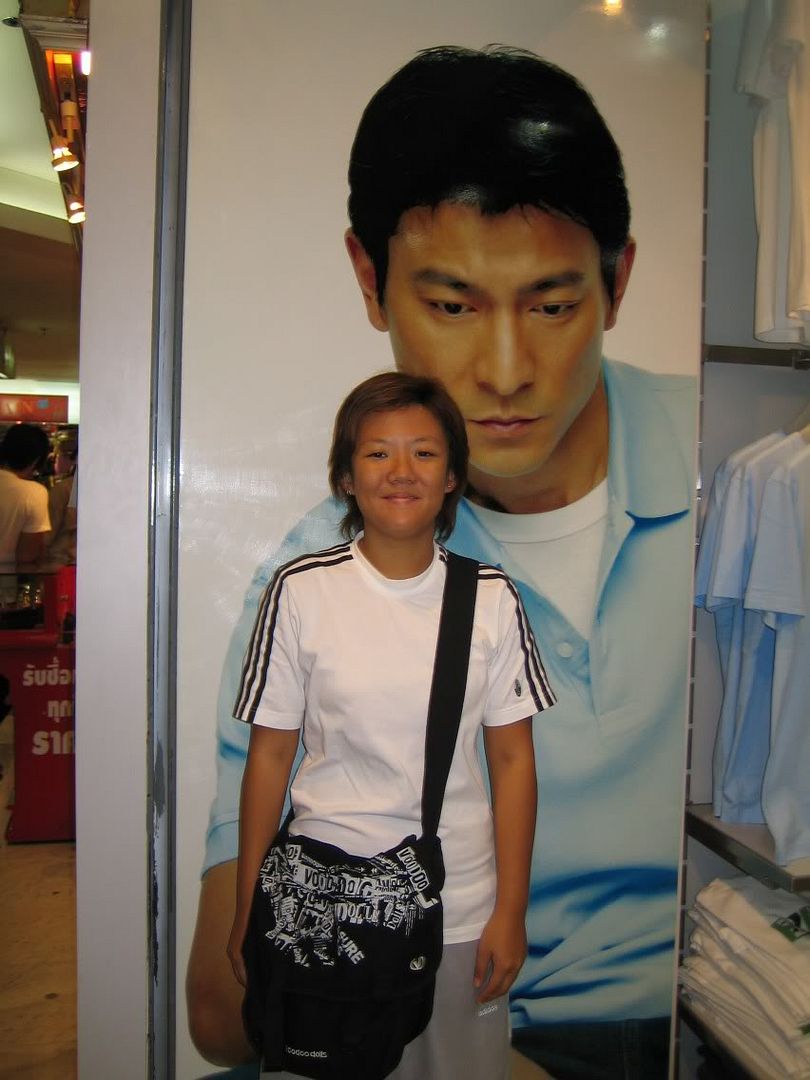 The perfect ouple photo! Wendy gets to be with her beloved De Hua. Who like fine wine, improves with age. You can see the intensity all in his face as he looks down, seemingly unaware of the fact tt he is just advertising a Bossini brand in a Bangkok shopping centre.