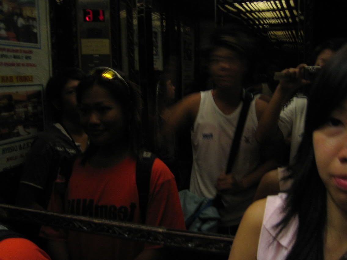 Ooh. Anyway...Lift picture! (Just to see if we could, coz there is a mirror in the lift. Yes, mirror pictures seem to be a speciality too.)