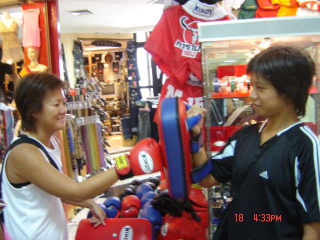 We walk out of tt shopping centre and explore a few more till we get to this one tt sells Muay Thai gear. And yeah.