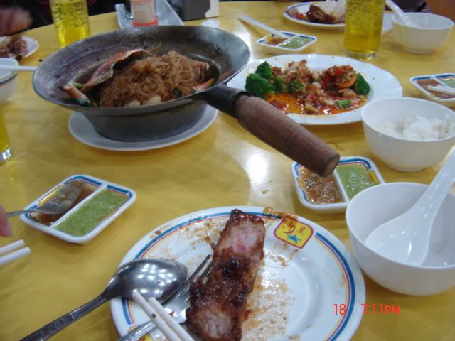 Crab with tanghoon, pork ribs, brocolli with scallops and X.O. sauce, live prawns... oh man...