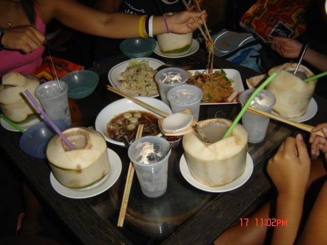 Ahh yes... The look of contentment. Beef ball noodles, pad thai, tom yam soup, papaya salad and coconuts!!!